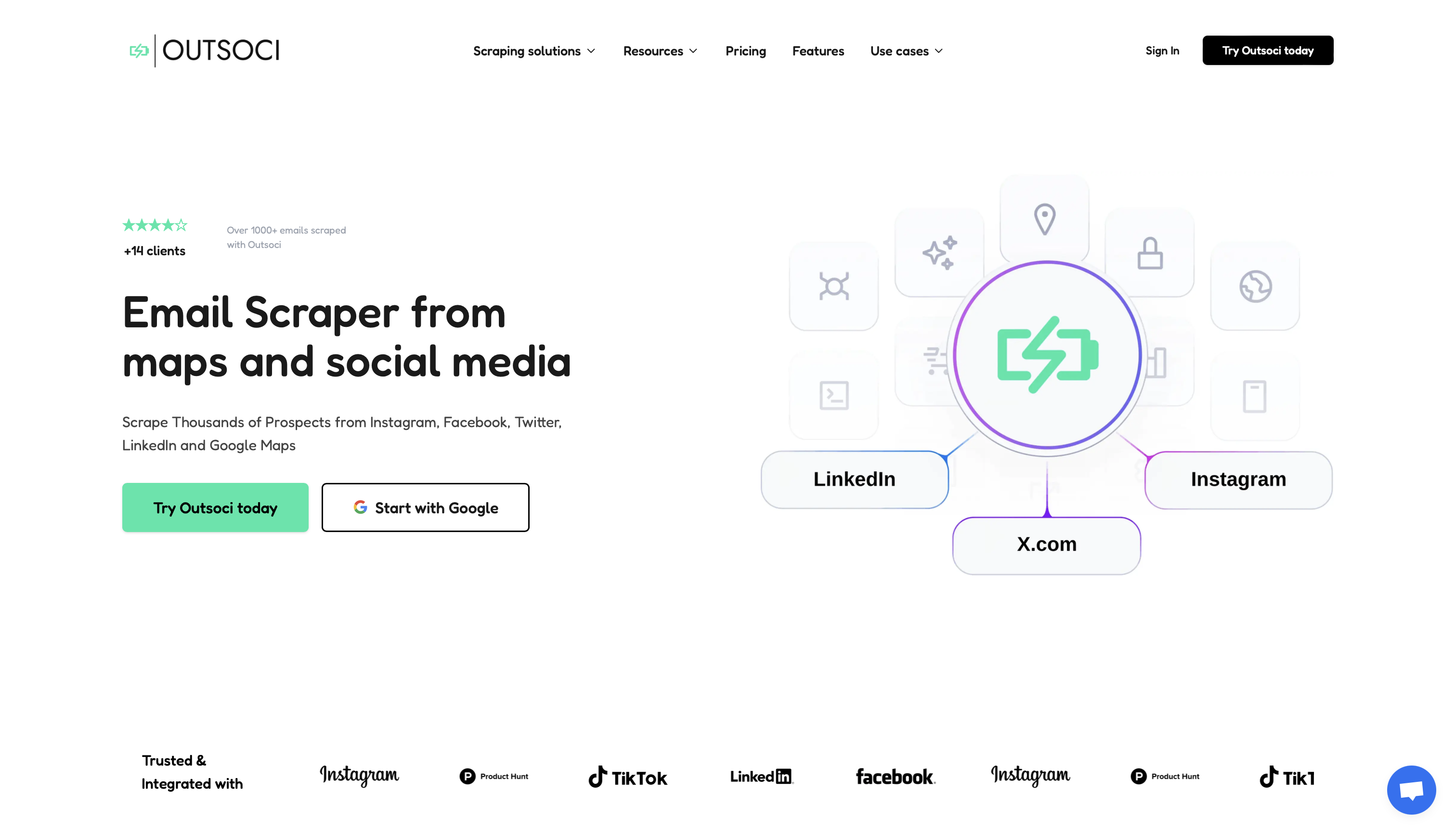Introduction:Outsoci is a powerful SaaS platform designed to revolutionize lead generation for businesses and marketing agencies. It specializes in legally scraping publicly available email addresses and contact information from a wide array of social media platforms and Google Maps, enabling users to build hyper-targeted prospect lists efficiently.